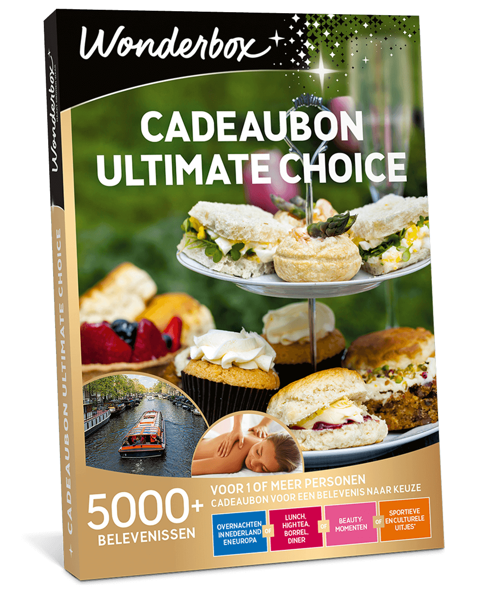 Met de veelzijdige Ultimate Choice van Wonderbox kan de ontvanger zich verheugen op talloze onvergetelijke ervaringen! Wat dacht je van een culinair driegangendiner, een ontspannende dag in de sauna of een gedroomde overnachting? Op allerlei verschillende locaties is het mogelijk om deze cadeaukaart in te wisselen. De keuze is volledig aan de ontvanger wat hij of zij het liefste doet. Wacht niet langer en bestel nu dit originele en flexibele cadeau!