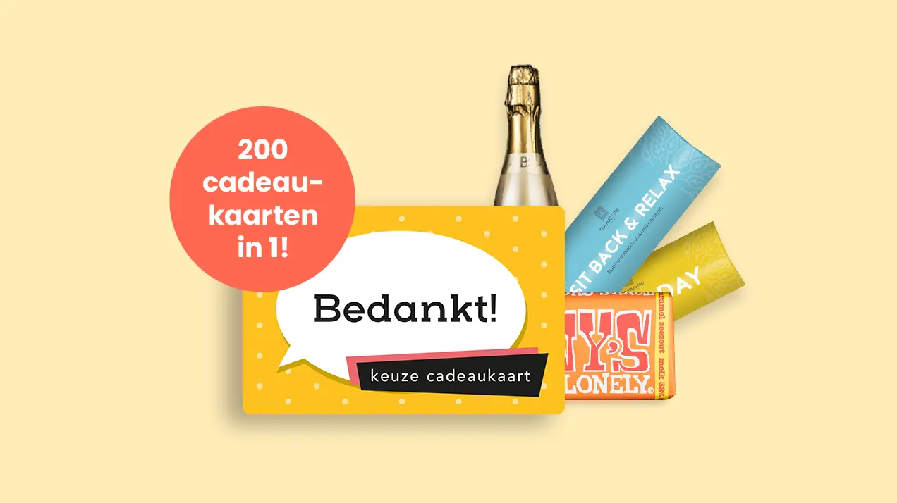 Gaat er een collega of werknemer met pensioen? Dan is bijvoorbeeld de Bedankt Keuze Cadeaukaart, vanwege de passende naam, een perfect cadeau. Daarnaast bieden onze keuze cadeaukaarten de ontvanger alle vrijheid om zelf een cadeaukaart uit te zoeken.